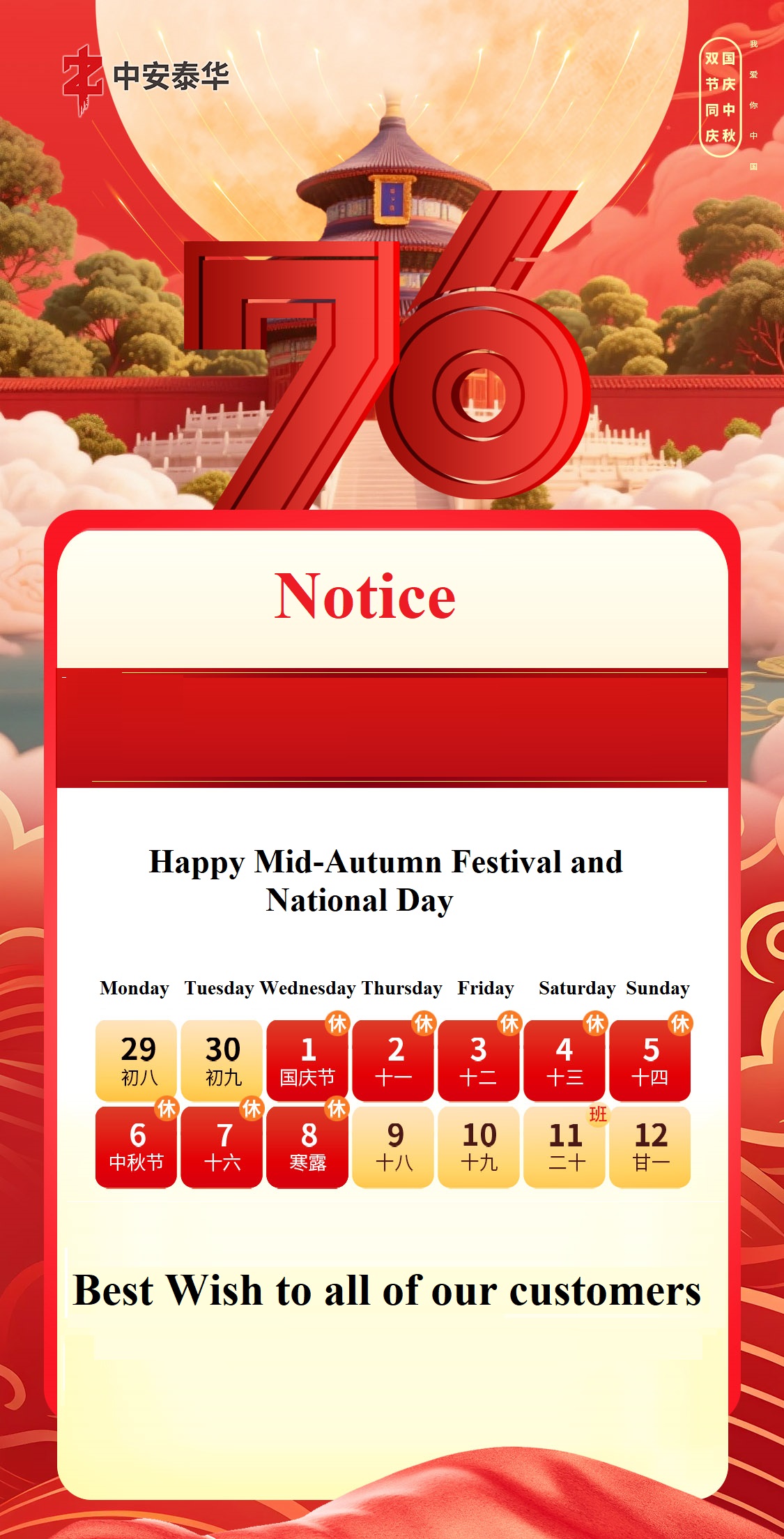 As we approach the joyous occasion of Chinese Mid-Autumn, we would like to inform you about our holiday schedule: